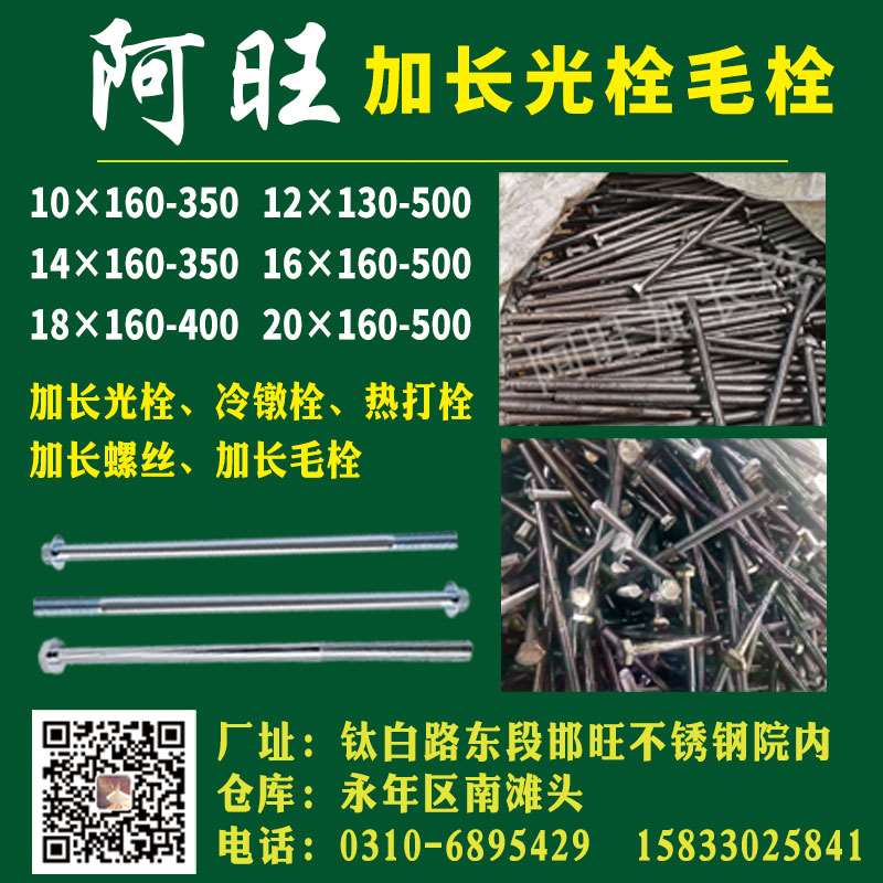 主营:加长光栓、加长毛栓、冷镦栓、热打栓、加长螺栓