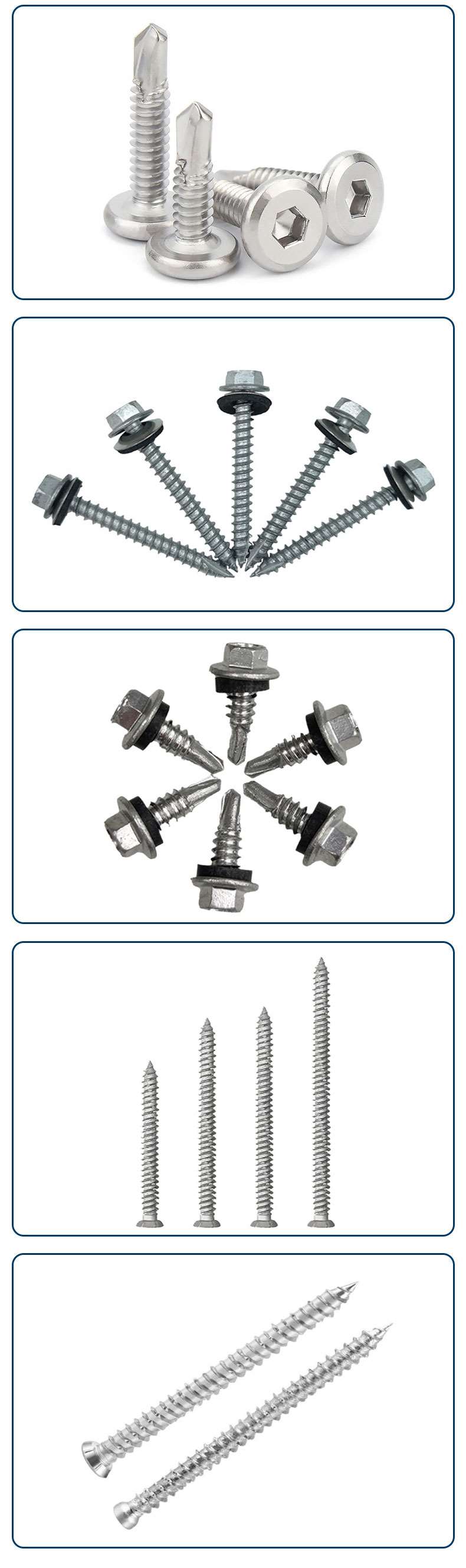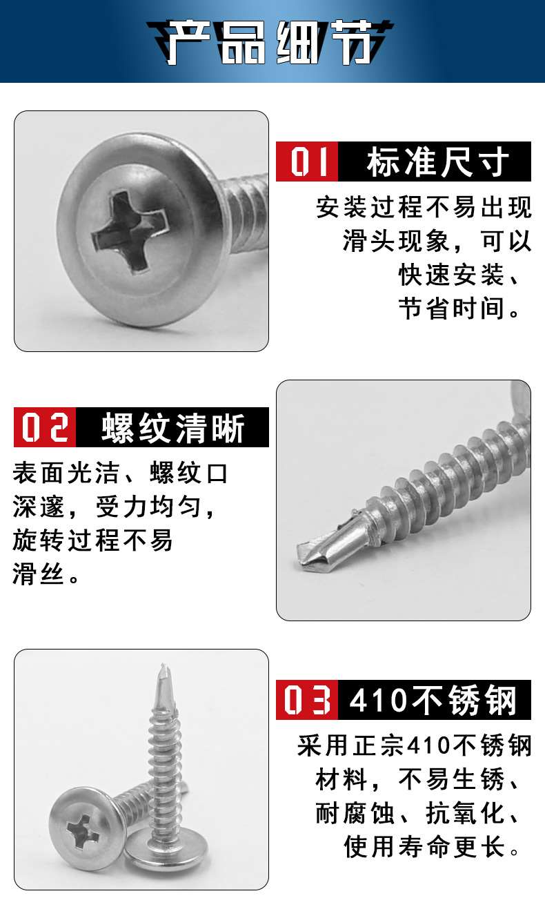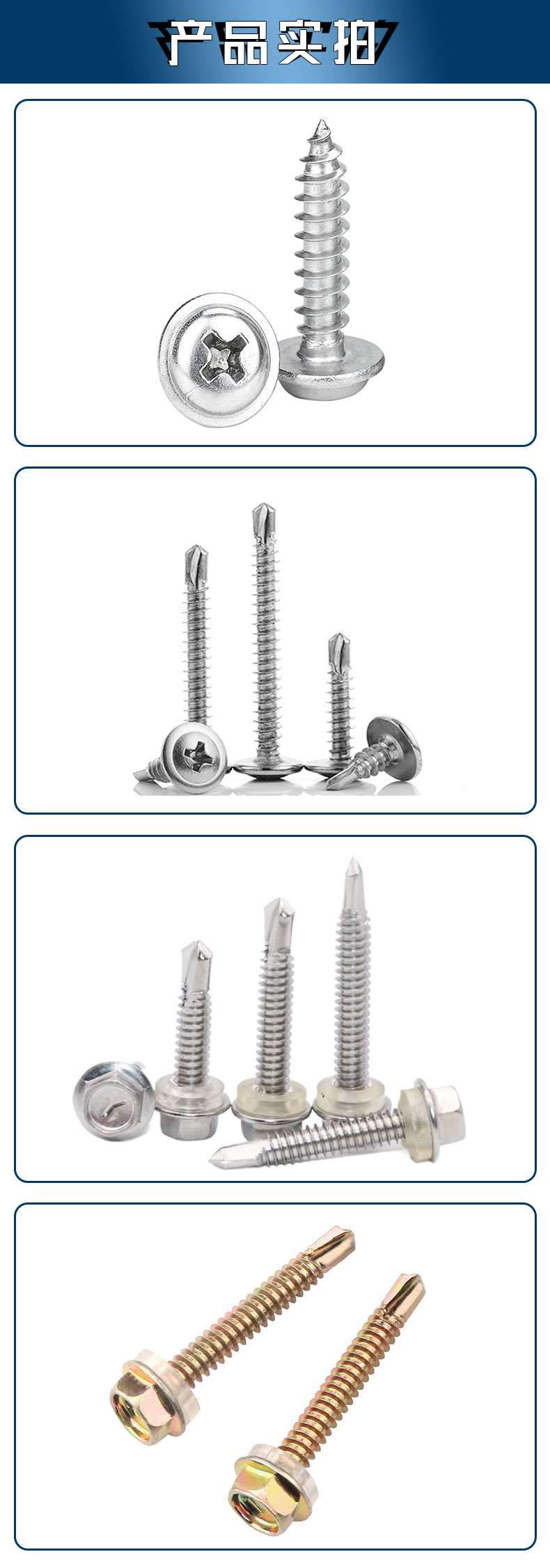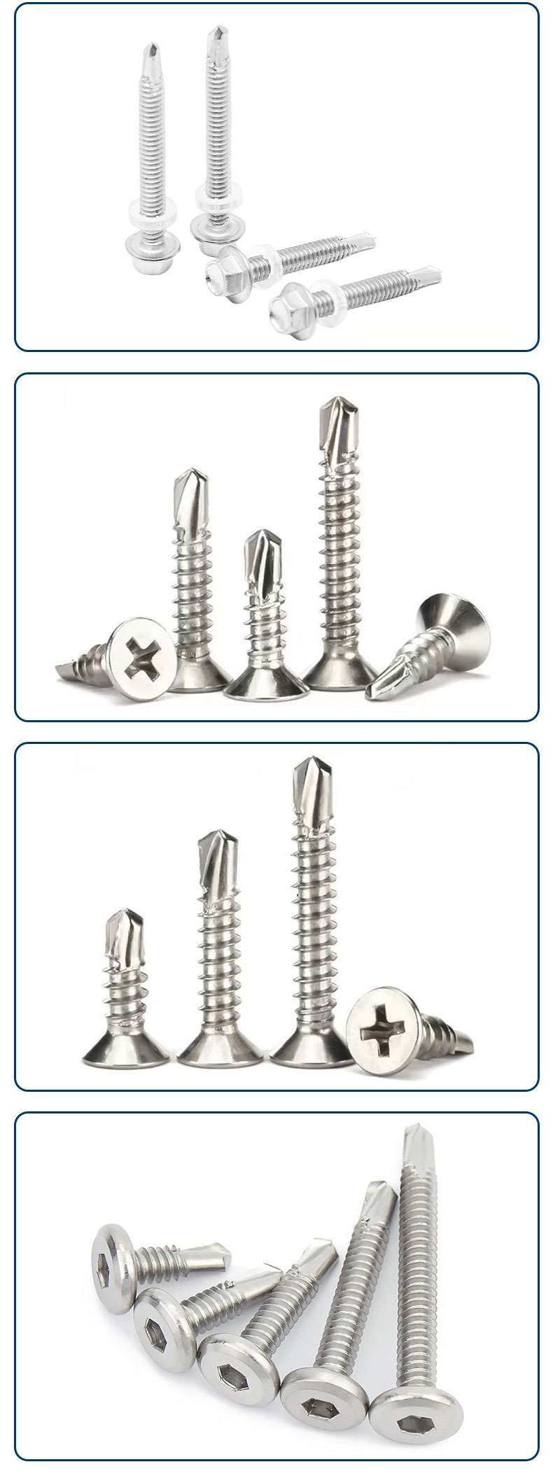 六角头不锈钢4.8/5.5/6.3系列、沉头十字4.2/4.8、盘头十字4.2/4.8、沉头小刀口细牙钻尾 4.2/4.8系列、复合垫410不锈钢钻尾系列