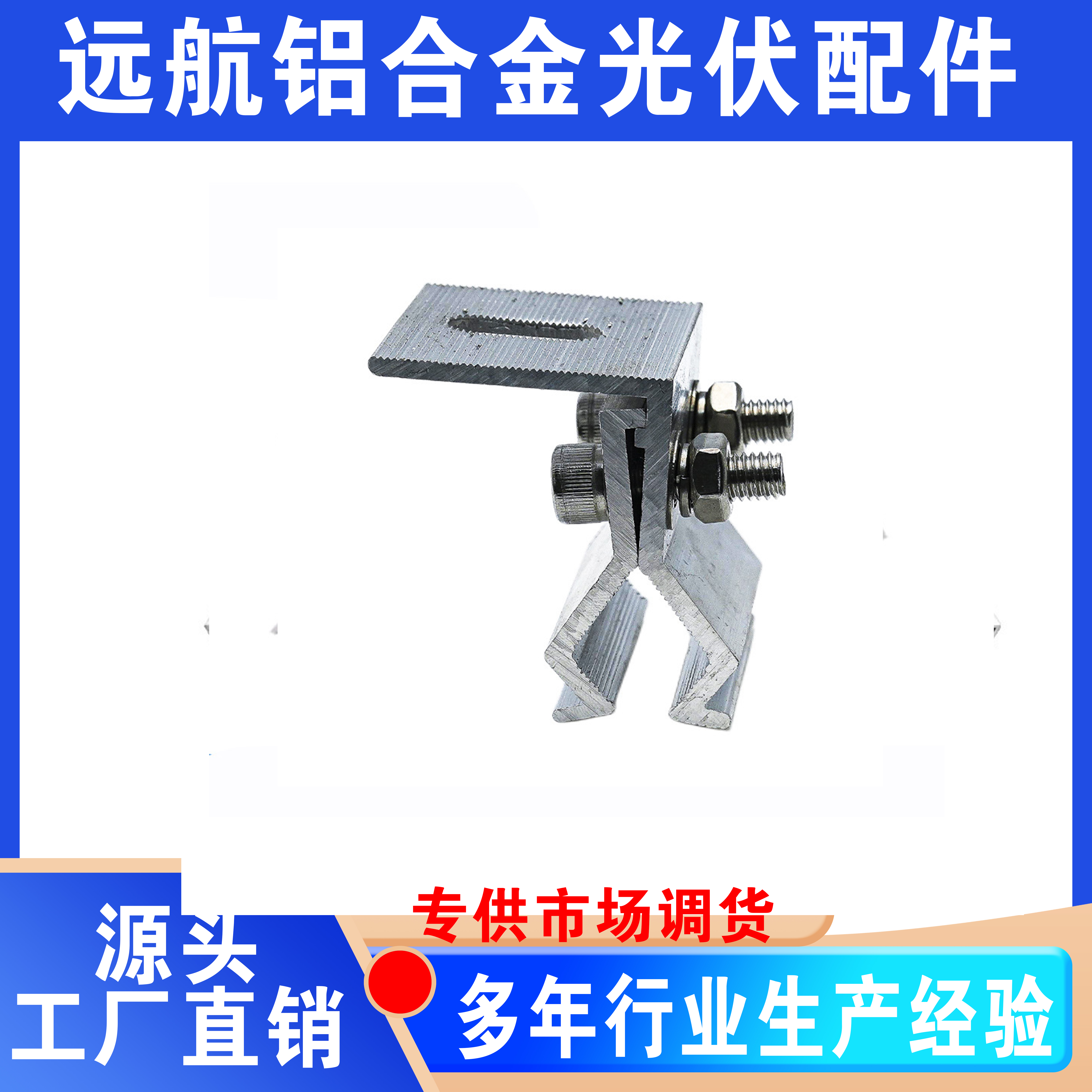 主营:铝合金加筋导轨、H型导轨、中担板、中压、边压、角驰夹具、、光伏锌铝镁支架、三角连接件、直连接、水槽托架、滑块母、80压块组合