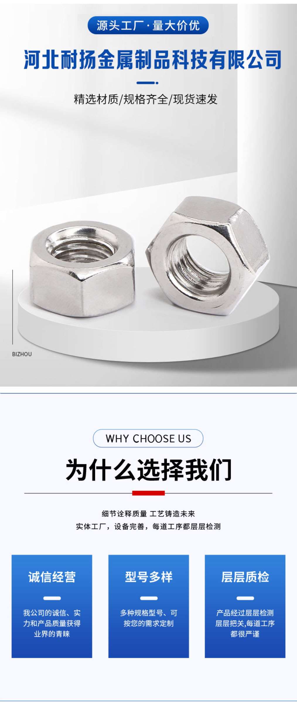 主营:2H螺母、防松母、法兰母、高强度螺母、英制、美制螺母、薄螺母、不锈钢螺母、四角焊接螺母、台阶螺母、加厚螺母、光母、毛母、加大孔螺母、特大螺母