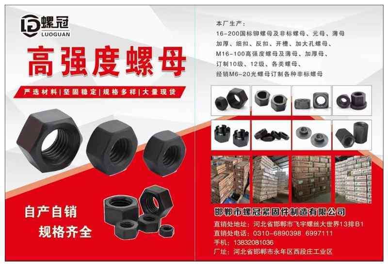 主营:m20---m120普通正标毛螺母 m8---m120 高强度螺母 m12---m120细扣 反扣 加厚 m20---m120扁螺母 m16---m120 热镀锌螺母 355Bm16---m120螺母 Q235 35号钢 45号钢 355B 35CrM0A 42CrM0A 4级 6级 8级 10级 12级