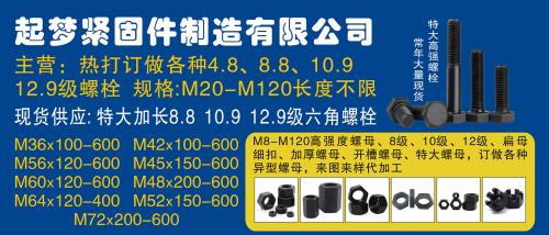 热打订做各种4.8、8.8、10.9、12.9级螺栓 规格:M20-M120长度不限