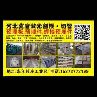 主营: 冀唐激光割板 槽钢 角钢 方管 圆管 主要生产:2—50mm厚钢板加工、预埋板、预埋件、定位板、垫片、法兰盘、槽钢,角铁,圆管,方管切割冲孔、电力金具铁附件、焊接预埋件、防落梁、高铁围栏、托辊支架、管廊支座、幕墙配件等,承包整套焊接件加工,来图定做异形件。 100%厂家直销 质量好,价格低,交货快 地址:永年县段庄工业区 手机/微信:15373773199