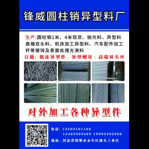 主营: 圆柱销异型料厂,锯料圆柱销3—100,1米,3米,4米。大量现货。专供市场调货,永年最低价格。