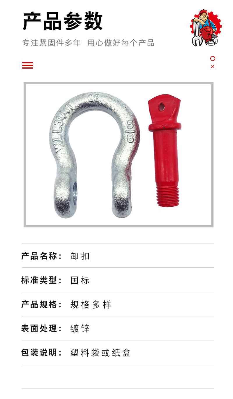 主营:钢丝绳卡头、花兰螺丝、卸扣、吊环、鸡心环、美式货钩、高强卸扣