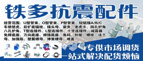 主营:U型管束、O型管束、P型管束、铰链接A/B/C、车修壁虎、后扩底锚栓、接头母、梁夹、老虎卡、四孔护角、八孔护角、T型连接件、L型连接件、十字连接件、减震器、免焊底座、万向底座、焊接底座、角码、扣垫、螺栓、法兰母、加强筋、塑翼螺母、弹簧螺母、堵盖 专供市场调货 一站式解决配货烦恼