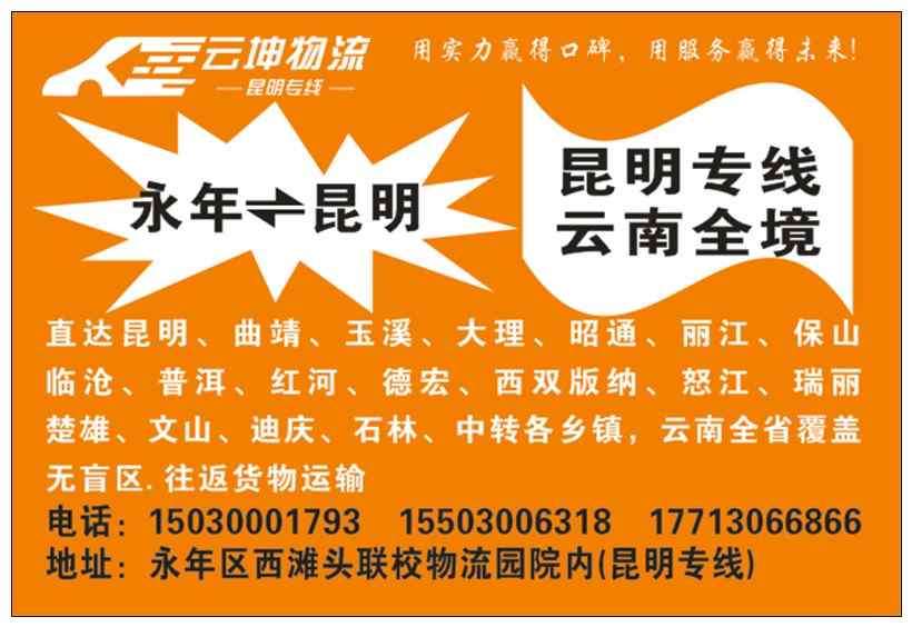 地址:永年区西滩头联校物流园院内(昆明专线)