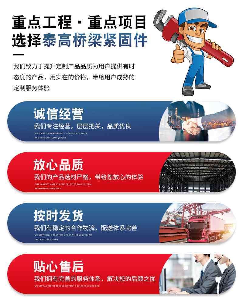 主营:贝雷销、支架螺栓、弦杆螺栓、保险卡、爬锥螺母,钢结构螺栓,激光割板、预埋钢板、高强度桥梁紧固件、大量现货供应、量大从优、保证质量!