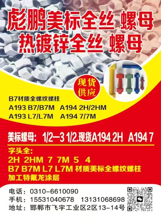 彪鹏热镀锌美标B7 全螺纹螺柱 螺母