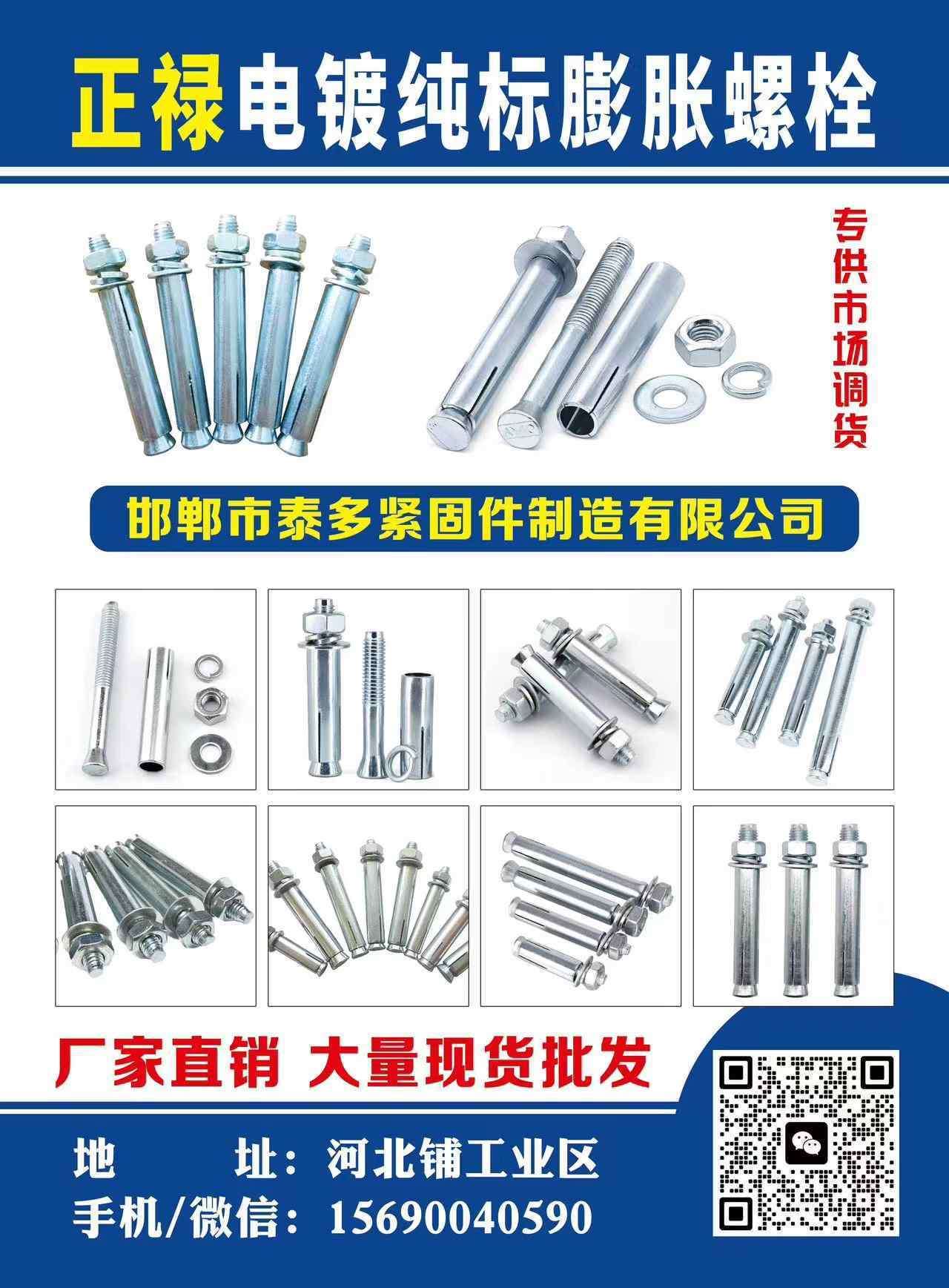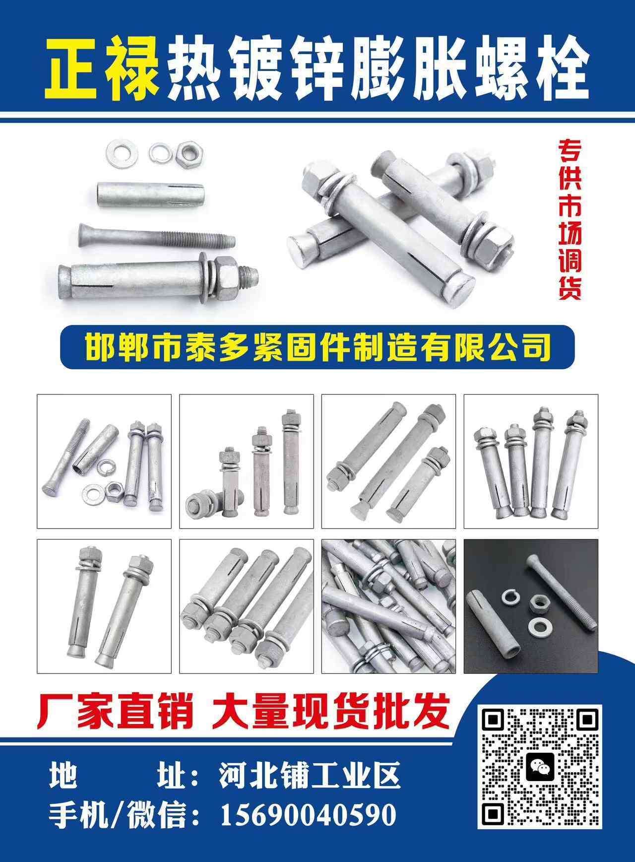 主营:热镀锌膨胀螺丝 热镀锌膨胀栓 实力厂家 厂家经营 大量现货 专供市场调货
