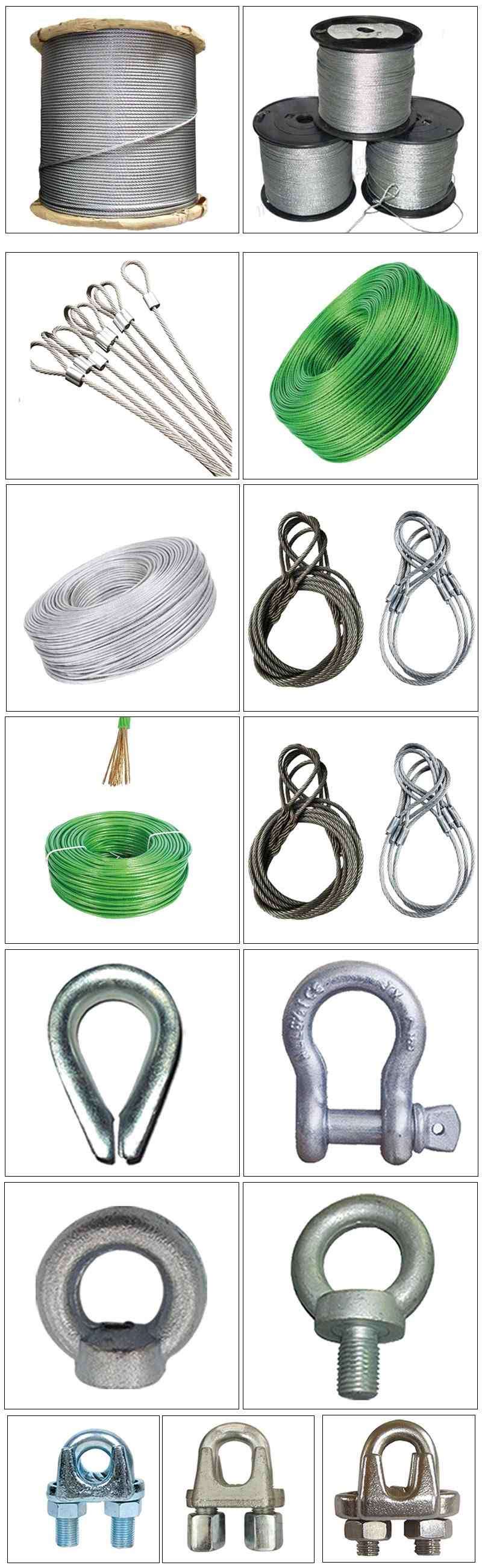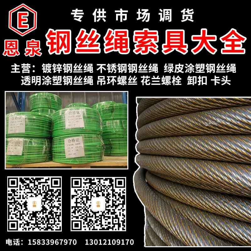 镀锌钢丝绳、不锈钢钢丝绳、 绿皮涂塑钢丝绳、透明涂塑钢丝绳