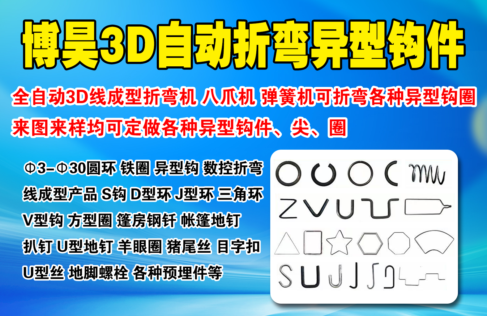 Φ3-Φ30圆环、铁圈、异型钩、数控折弯、线成型产品