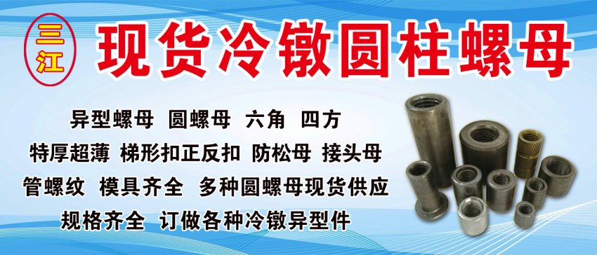 主营:异型螺母 圆螺母 六角 四方特厚超薄 梯形扣正反扣 防松母 接头母 管螺纹 模具齐全 多种圆螺母现货供应规格齐全 订做各种冷镦异型件